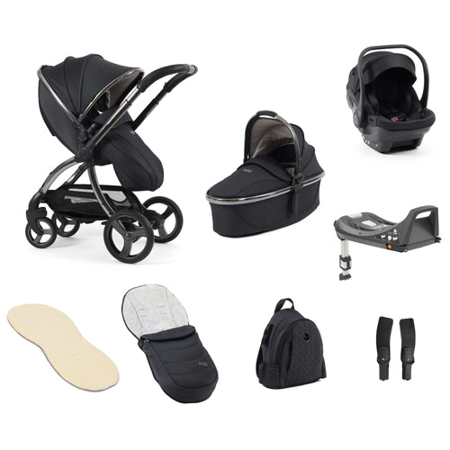 The egg3 Luxury Bundle comes complete with everything you need to travel easily, comfortably, and fashionably with your little one from day one, including the egg3 Pushchair, egg3 Carrycot, egg Shell Car Seat, egg Shell ISOFIX Base, Multi Car Seat Adaptors, Luxury Seat Liner, Footmuff, Backpack, Hood, Apron, Raincover, and Insect Net.