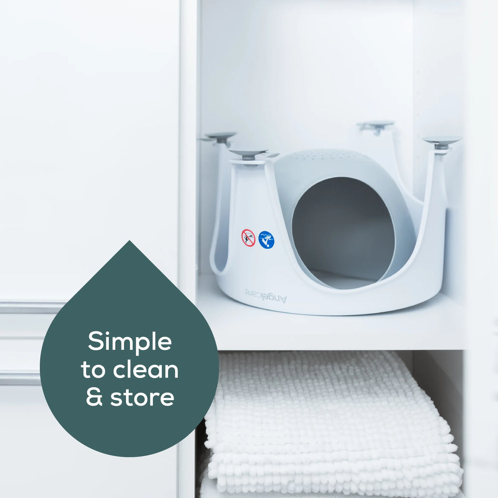 Bath time routines can happen at home, at the grandparents’ house, or even on holiday, and the Angelcare® Baby Bath Seat fits seamlessly into any lifestyle. It’s compact, easy to clean and simple to store, making it wonderfully practical for busy families. Whether you prefer to bathe your baby in the family tub or use a walk-in shower, the seat fits securely in most standard spaces — just be sure to avoid uneven surfaces.