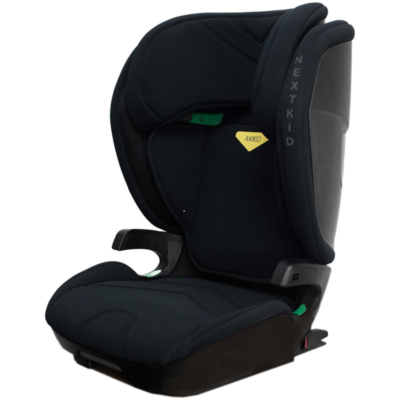 Introducing the Axkid Nextkid in Shell Black, a high back booster seat designed to prioritise your child's safety. With its four-step expanding side wings, adjustable headrest, and soft premium textile, the Axkid Nextkid provides a secure and comfortable seating experience for children from 100cm to 150cm, spanning approximately 4 to 12 years of age.