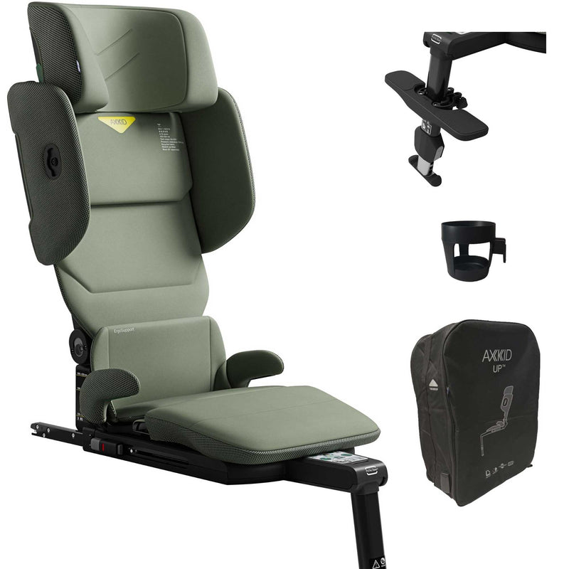 Bundle includes: Axkid Up™ booster seat, Axkid Up Leg Rest, Axkid Up Cup Holder, and Axkid Up Travel Bag