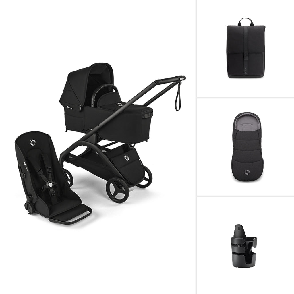 Bugaboo understands the need for practicality when it comes to days out with your little one. That's why the Bugaboo Dragonfly in Black/Midnight Black comes equipped with a smart and flexible storage system. The expandable rear pocket can be conveniently moved to wherever you need it most – whether it's at the front, back, or on the handlebar. Now, you can effortlessly keep all your essentials within easy reach.