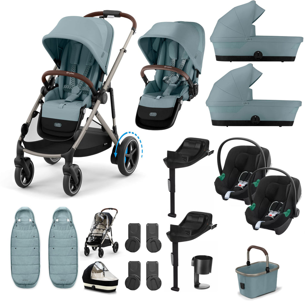 (Optional: 2x Gazelle S Carrycots for newborn twins)