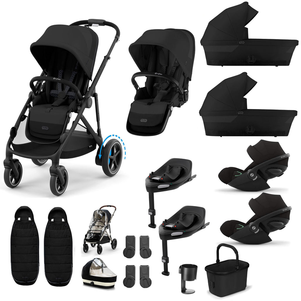 This bundle is travel system ready, making car-to-stroller transitions seamless. Included are 2x Cybex Cloud G or Cloud T infant car seats, which fit securely onto the eGazelle S chassis using the included car seat adapters. Approved for use from birth, these car seats provide side-impact protection, adjustable headrests, and a comfortable, cosy interior for newborns. Now, whether you’re driving or strolling, your twins are safely and comfortably covered.