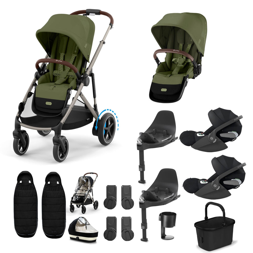 This bundle is travel system ready, making car-to-stroller transitions seamless. Included are 2x Cybex Cloud G or Cloud T infant car seats, which fit securely onto the eGazelle S chassis using the included car seat adapters. Approved for use from birth, these car seats provide side-impact protection, adjustable headrests, and a comfortable, cosy interior for newborns. Now, whether you’re driving or strolling, your twins are safely and comfortably covered.