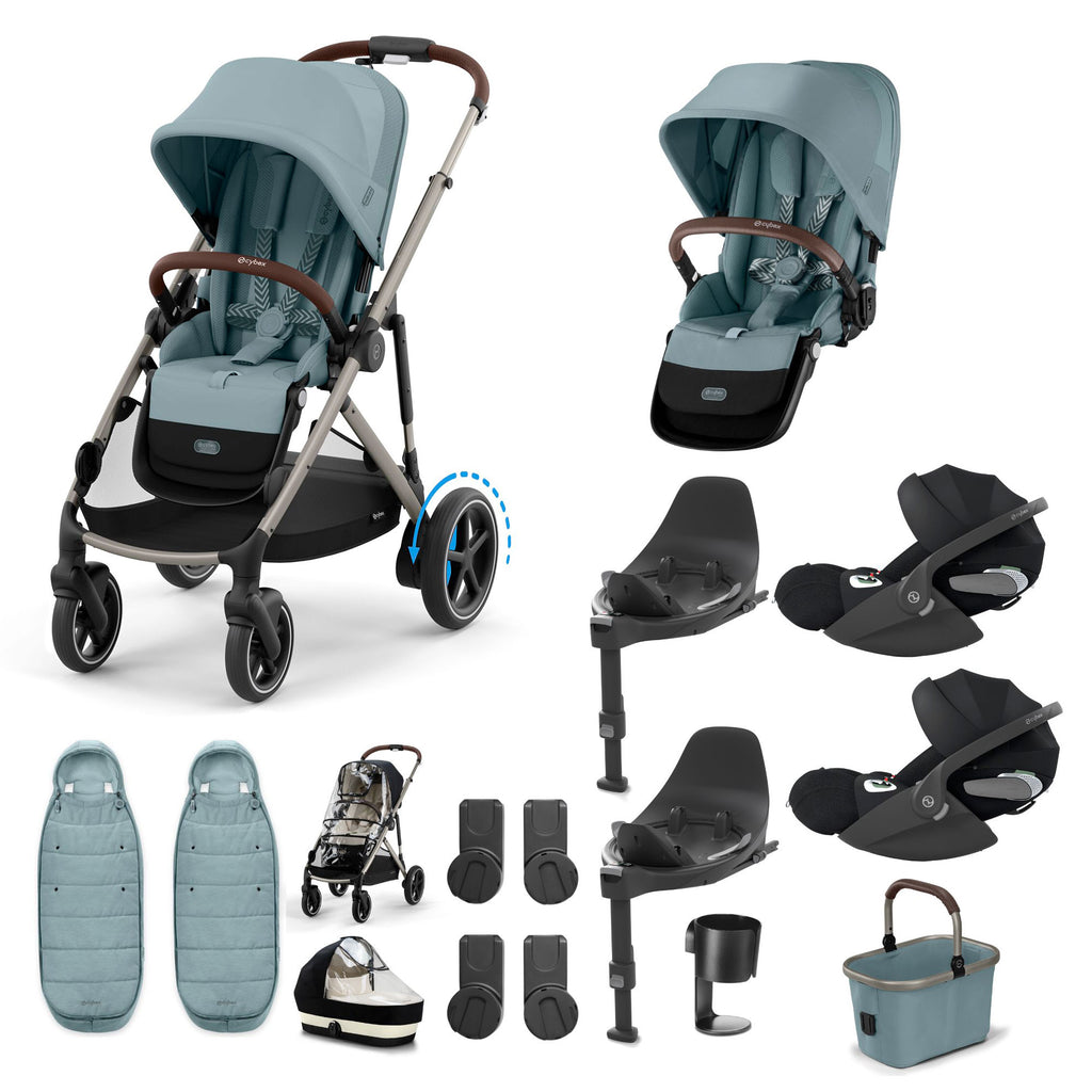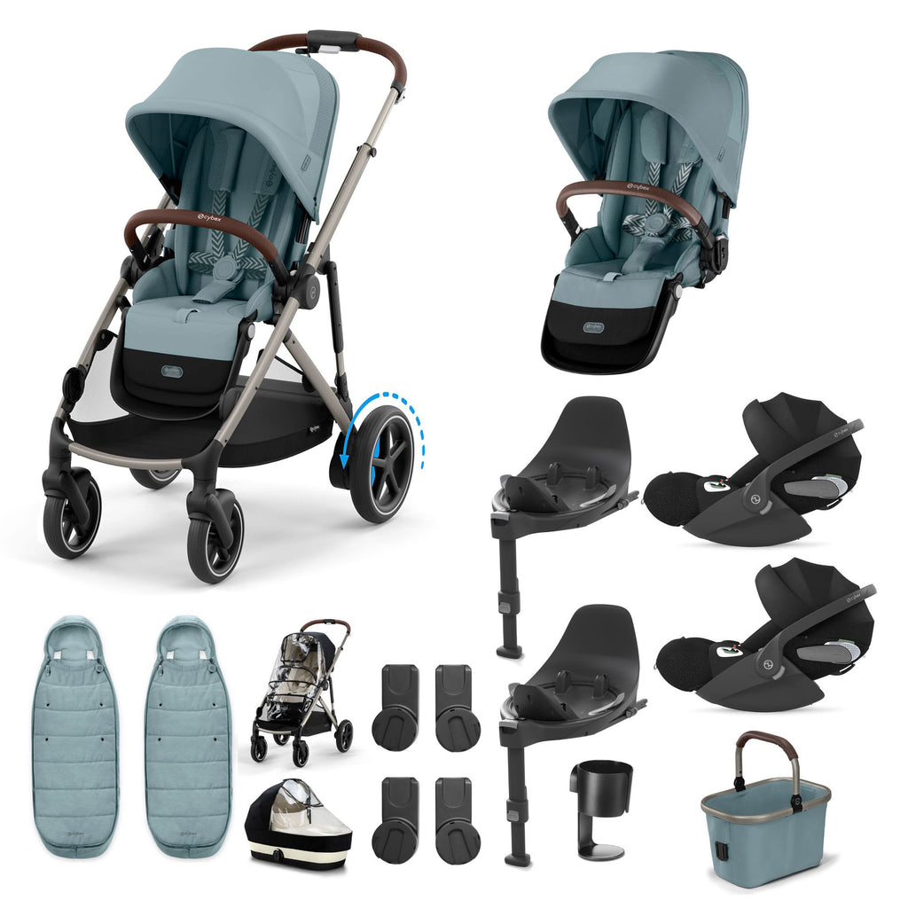 This bundle is travel system ready, making car-to-stroller transitions seamless. Included are 2x Cybex Cloud G or Cloud T infant car seats, which fit securely onto the eGazelle S chassis using the included car seat adapters. Approved for use from birth, these car seats provide side-impact protection, adjustable headrests, and a comfortable, cosy interior for newborns. Now, whether you’re driving or strolling, your twins are safely and comfortably covered.