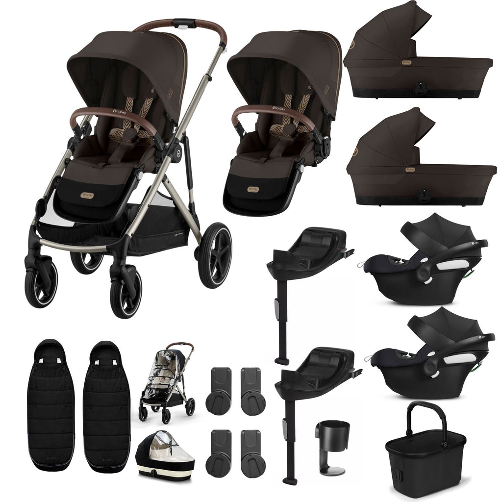 This bundle is travel system ready, making car-to-stroller transitions seamless. Included are 2x Cybex Aton B2 infant car seats, which fit securely onto the Gazelle S chassis using the included car seat adapters. Approved for use from birth, these car seats provide side-impact protection, adjustable headrests, and a comfortable, cosy interior for newborns. Now, whether you’re driving or strolling, your twins are safely and comfortably covered.