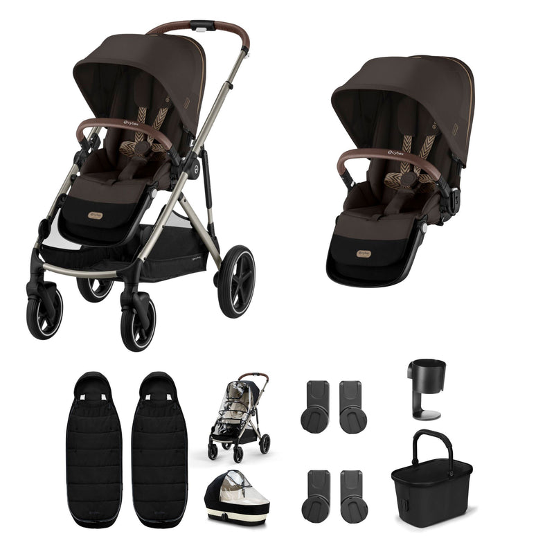 Double the fun, double the convenience! The Cybex Gazelle S Essential Twin Bundle in Taupe/Chocolate Brown is designed for families with two little ones, whether they’re siblings close in age or twins. With this versatile stroller system, you can tackle double-duty strolls with ease, comfort, and style. With over 20 possible configurations, you can mix and match seats and carrycots (optional) to find the perfect setup for your growing family.