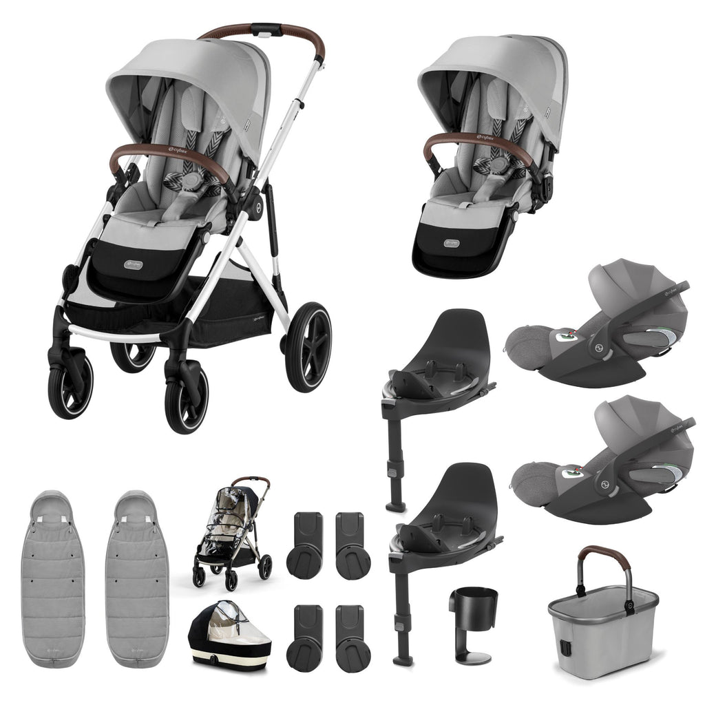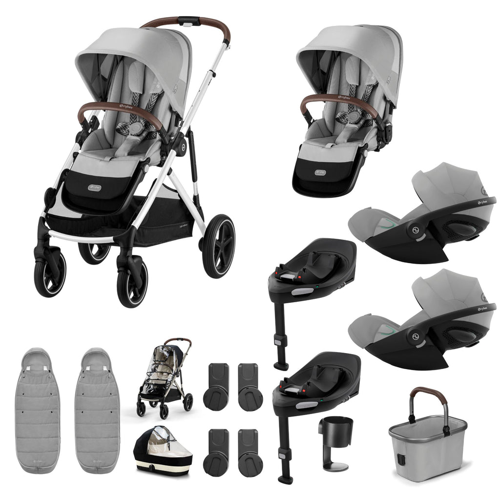 This bundle is travel system ready, making car-to-stroller transitions seamless. Included are 2x Cybex Cloud G or Cloud T infant car seats, which fit securely onto the Gazelle S chassis using the included car seat adapters. Approved for use from birth, these car seats provide side-impact protection, adjustable headrests, and a comfortable, cosy interior for newborns. Now, whether you’re driving or strolling, your twins are safely and comfortably covered.