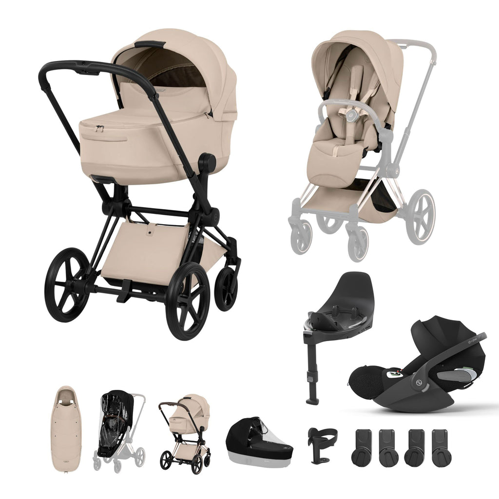 From the very first car journey home to confident toddler strolls through the park, the Cybex PRIAM Platinum Style Ultimate Accessory Bundle in Sepia Black has every stage of early family life covered. Bringing together the luxurious PRIAM pushchair set, the Fold Lux Carry Cot, the Cloud T i-Size infant car seat, the ISOFIX Base T, and the cosy Platinum Footmuff, this is the complete package for parents who want the very best — beautifully bundled together so you don't have to lift a finger.