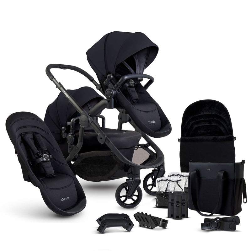 Embark on your parenting journey with the iCandy Orange 4 Double Pushchair in Black, a beautifully designed, multi-functional pushchair that grows with your family. If you already have a little one in tow, this single-to-double ready pushchair is built to adapt to your needs. With an included additional seat unit frame and fabric, you are prepared for when your youngest outgrows the carrycot. Equipped with enhanced functionality, even softer suspension, and greater manoeuvrability, the Orange 4 promises a smooth, comfortable ride for both parent and child. It doesn’t just excel in practicality – it boasts a refined, stylish look that’s sure to turn heads.