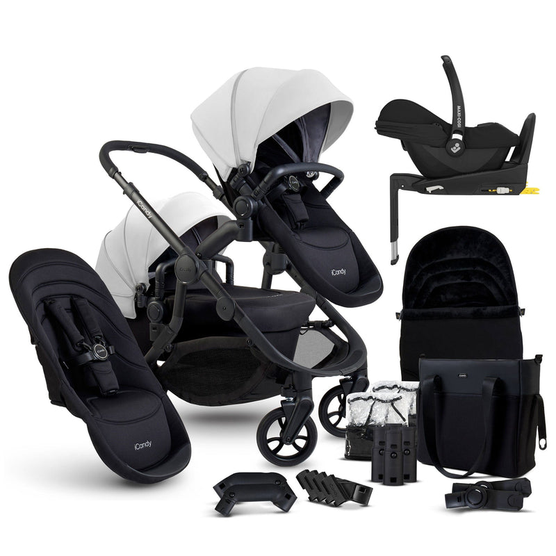 Embark on your parenting journey with the iCandy Orange 4 Double Maxi-Cosi Travel System in Glacier, a beautifully designed, multi-functional pushchair that grows with your family. If you already have a little one in tow, this single-to-double-ready pushchair is built to adapt to your needs, with the included additional seat fabric, the pushchair is ready to change when your youngest grows out of the carrycot. Equipped with enhanced functionality, even softer suspension, and greater manoeuvrability, the Orange 4 promises a smooth, comfortable ride for both parent and child. It doesn’t just excel in practicality – it boasts a refined, stylish look that’s sure to turn heads.
