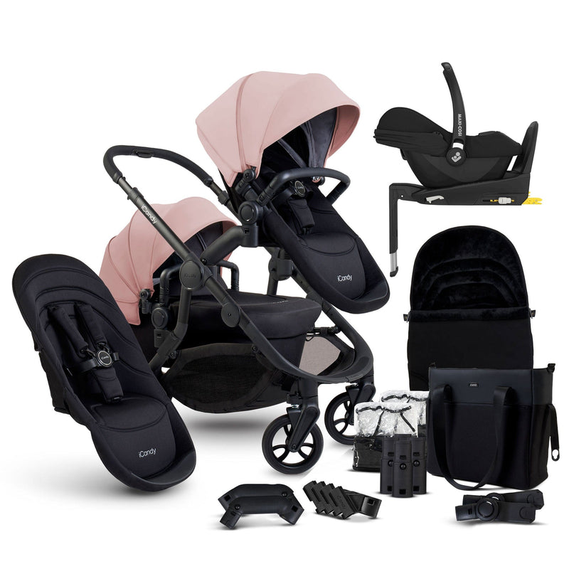 Embark on your parenting journey with the iCandy Orange 4 Double Maxi-Cosi Travel System in Rose, a beautifully designed, multi-functional pushchair that grows with your family. If you already have a little one in tow, this single-to-double-ready pushchair is built to adapt to your needs, with the included additional seat fabric, the pushchair is ready to change when your youngest grows out of the carrycot. Equipped with enhanced functionality, even softer suspension, and greater manoeuvrability, the Orange 4 promises a smooth, comfortable ride for both parent and child. It doesn’t just excel in practicality – it boasts a refined, stylish look that’s sure to turn heads.