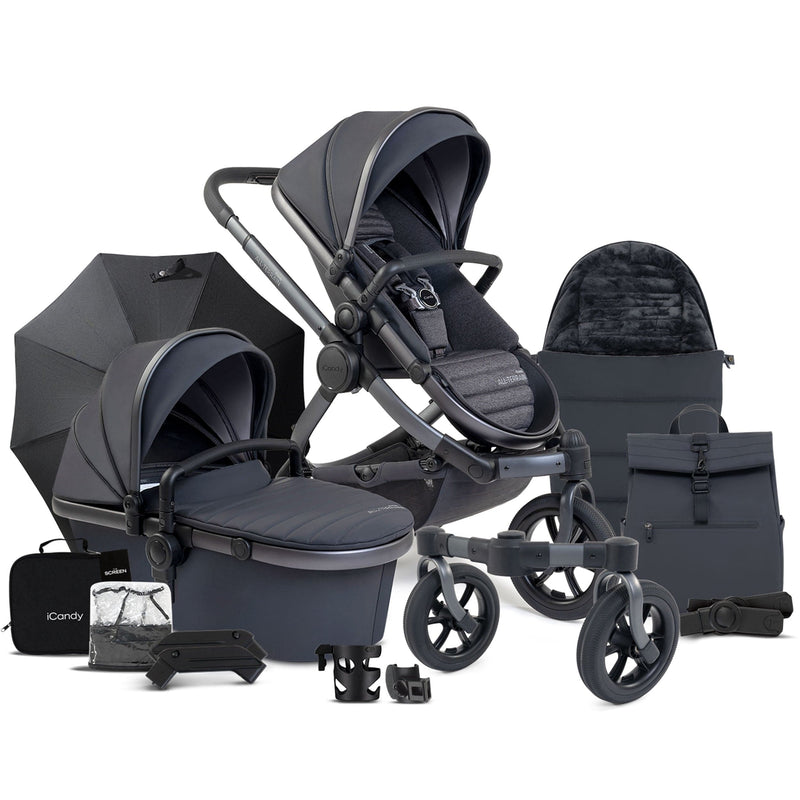 The iCandy Peach 7 All-Terrain's multi-functionality is a game-changer. In four-wheel mode, it converts from a single to a double or twin pushchair without expanding its footprint, ensuring practicality and ease of use.