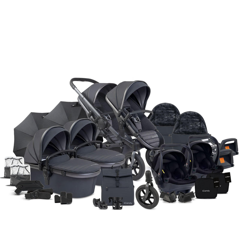 Discover the ultimate pushchair designed for adventurous parents: the iCandy Peach 7 All-Terrain Twin with Cocoon Car Seats. Engineered to conquer any terrain, this visual masterpiece combines modern fabrics with outdoor leisure trends. The sleek sporting touches and off-road capability make it perfect for families who love to explore. Available in Storm fabric with a Nimbus, satin slate grey chassis, it promises both style and functionality.