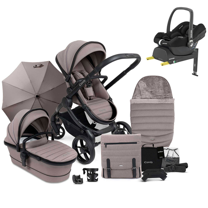 Welcome to the world of iCandy Peach 7 Maxi-Cosi Bundle in Porcini, the ultimate pushchair designed with first-time parents in mind. This beautifully engineered luxury pushchair adapts perfectly to you and your baby, offering a seamless blend of style, comfort, and practicality. From birth, the spacious carrycot serves as a cosy, secure space for your newborn, even suitable for overnight sleeping. The Maxi-Cosi Car Seat fits seamlessly onto the chassis creating your perfect travel system. Crafted with soft, premium knitted jersey fabrics, the Peach 7 ensures maximum comfort for your baby while exuding elegance for parents.