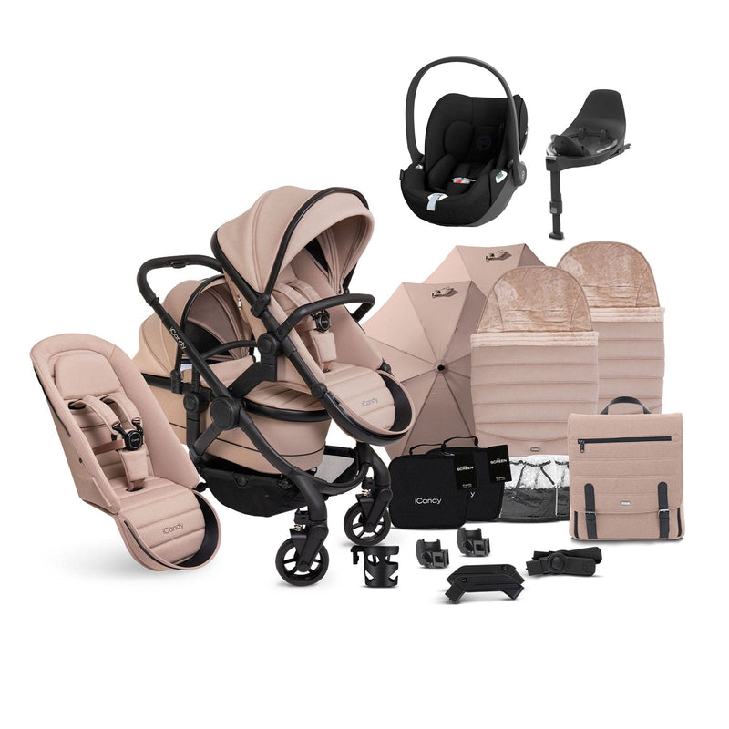 Step into seamless parenting with the iCandy Peach 7 Double Complete Cybex Travel System in Cookie. Designed for first-time parents and growing families, this luxurious single-to-double pushchair combines cutting-edge engineering with modern style. Its premium knitted jersey fabrics and elegant design deliver both comfort for your little ones and sophistication for you. With a comprehensive set of accessories included, you’ll be ready to take on every adventure in style.