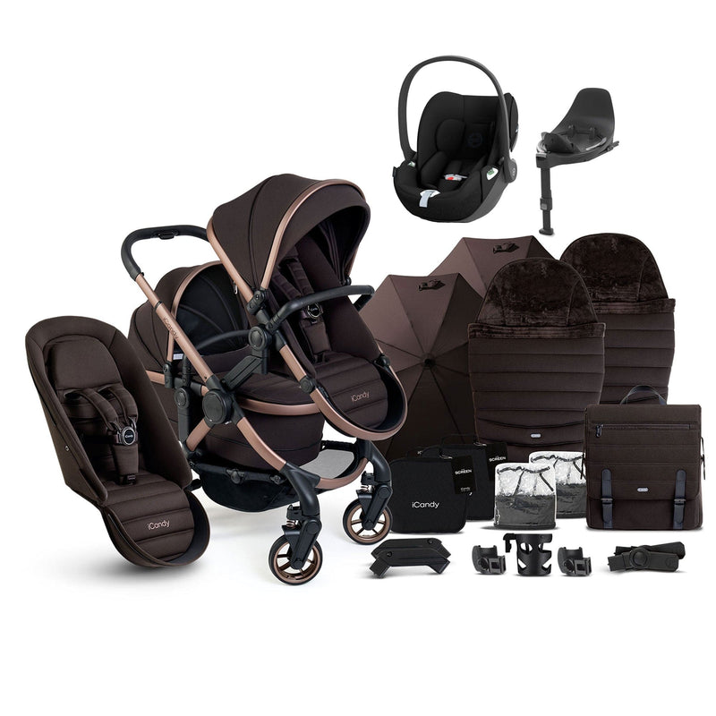 Step into seamless parenting with the iCandy Peach 7 Double Complete Cybex Travel System in Pecan. Designed for first-time parents and growing families, this luxurious single-to-double pushchair combines cutting-edge engineering with modern style. Its premium knitted jersey fabrics and elegant design deliver both comfort for your little ones and sophistication for you. With a comprehensive set of accessories included, you’ll be ready to take on every adventure in style.