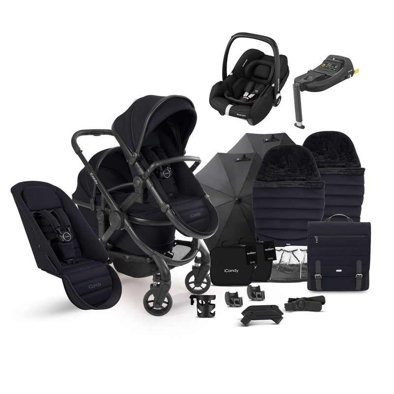 Step into seamless parenting with the iCandy Peach 7 Double Complete Maxi-Cosi Travel System in Black. Designed for first-time parents and growing families, this luxurious single-to-double pushchair combines cutting-edge engineering with modern style. Its premium knitted jersey fabrics and elegant design deliver both comfort for your little ones and sophistication for you. With a comprehensive set of accessories included, you’ll be ready to take on every adventure in style.