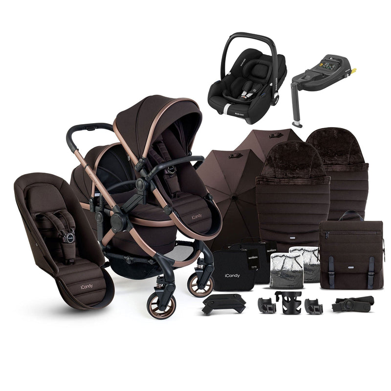 Step into seamless parenting with the iCandy Peach 7 Double Complete Maxi-Cosi Travel System in Pecan. Designed for first-time parents and growing families, this luxurious single-to-double pushchair combines cutting-edge engineering with modern style. Its premium knitted jersey fabrics and elegant design deliver both comfort for your little ones and sophistication for you. With a comprehensive set of accessories included, you’ll be ready to take on every adventure in style.