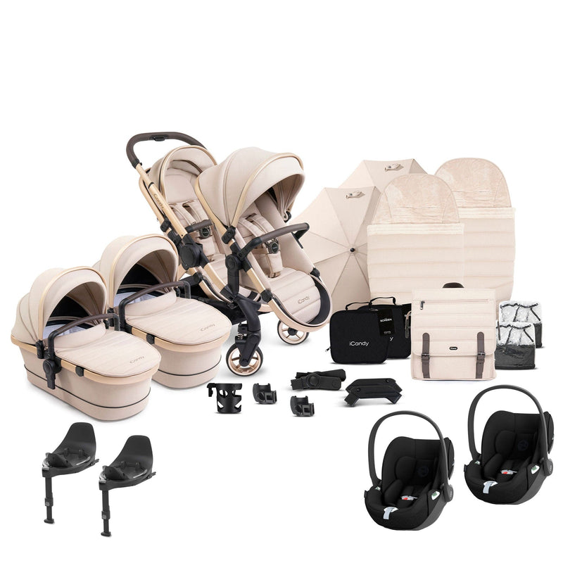 Step into seamless parenting with the iCandy Peach 7 Twin Complete Cybex Travel System in Biscotti. Designed for first-time parents with twins, this luxurious single-to-double pushchair combines cutting-edge engineering with modern style. Its premium knitted jersey fabrics and elegant design deliver both comfort for your little ones and sophistication for you. With a comprehensive set of accessories included, you’ll be ready to take on every adventure in style.
