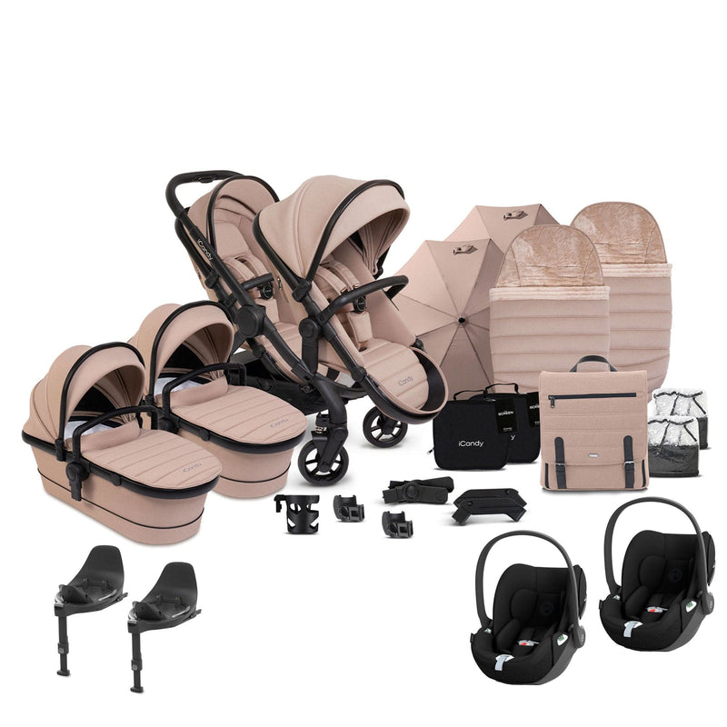 Step into seamless parenting with the iCandy Peach 7 Twin Complete Cybex Travel System in Cookie. Designed for first-time parents with twins, this luxurious single-to-double pushchair combines cutting-edge engineering with modern style. Its premium knitted jersey fabrics and elegant design deliver both comfort for your little ones and sophistication for you. With a comprehensive set of accessories included, you’ll be ready to take on every adventure in style.