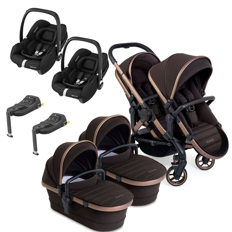 Welcome to the pinnacle of pushchair innovation with the iCandy Peach 7 Twin Maxi-Cosi Bundle in Pecan, meticulously designed to cater to the needs of first-time parents seeking luxury, functionality, and enduring style. This pushchair perfectly accommodates for Twins, starting from birth with its spacious carrycot, perfect for overnight sleeping arrangements, to its easy use travel system design. Crafted from premium knitted jersey fabrics, the Peach 7 blends comfort for your baby with contemporary style for discerning parents.