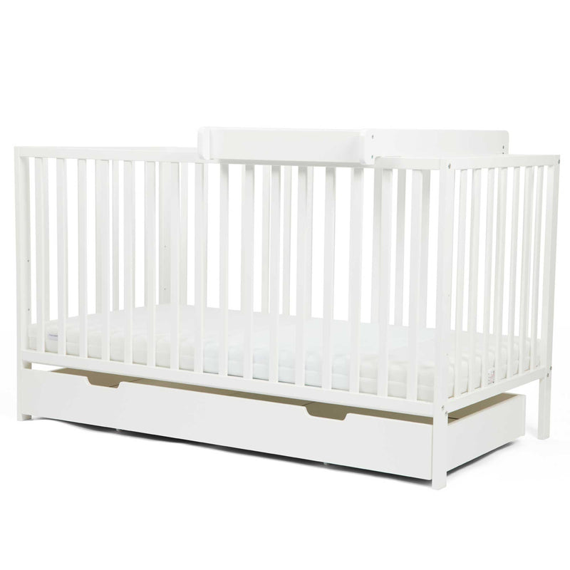 But this set isn’t just a looker – it’s a true multitasker. The under-bed drawer glides smoothly to keep essentials close by but neatly tucked away, whether it’s spare bedding, nappies or your little one’s ever-growing collection of sleepsuits.