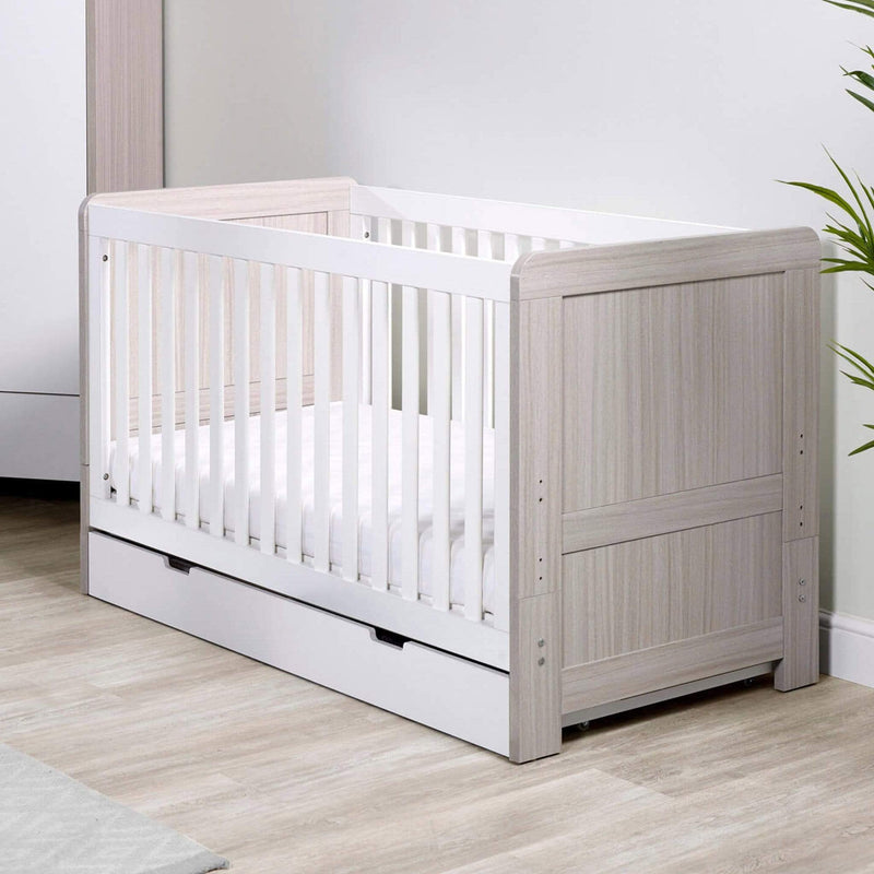 The Pembrey Cot Bed in Ash Grey & White, with its full textured oak style partnered with airy white slats will make the perfect addition to your little one's nursery. Its modern yet neutral design will complement any interior style and is ideal for parents who want something classic with a trendy twist.