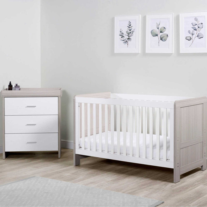 The Pembrey Cot Bed in Ash Grey & White, with its full textured oak style partnered with airy white slats will make the perfect addition to your little one's nursery. Its modern yet neutral design will complement any interior style and is ideal for parents who want something classic with a trendy twist.