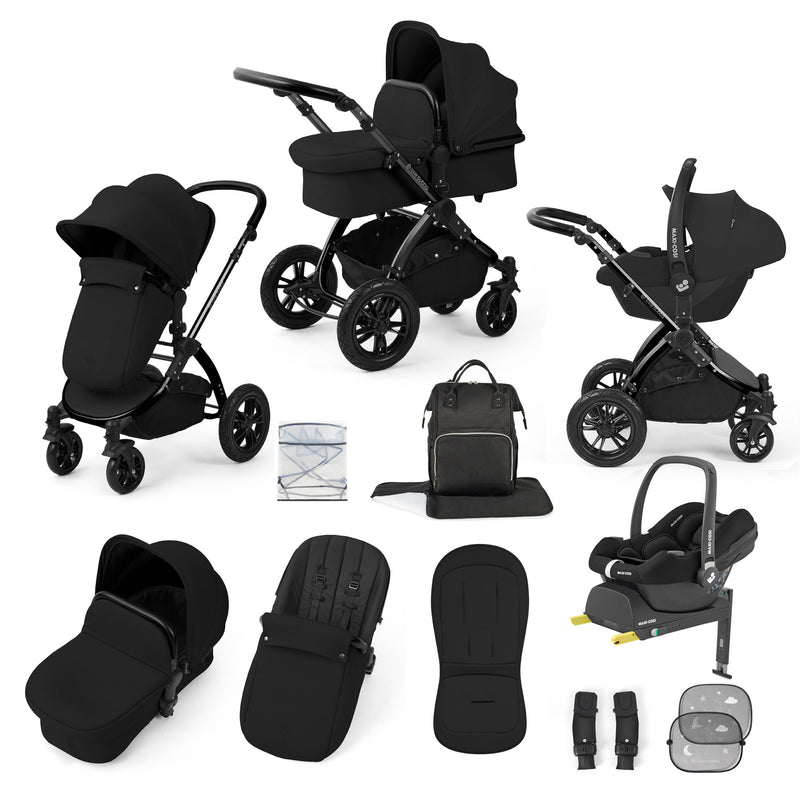 Experience everyday adventures with confidence, comfort, and a touch of luxury. The Stomp Luxe 12 Piece Travel System in Midnight with Maxi-Cosi CabrioFix i-Size Car Seat and ISOFIX Base brings together style, practicality, and premium safety to support you and your little one from the very first journey. Thoughtfully designed for modern families, this all-terrain system offers everything you need to travel smoothly—whether you’re navigating busy city streets or exploring off-the-path countryside trails.