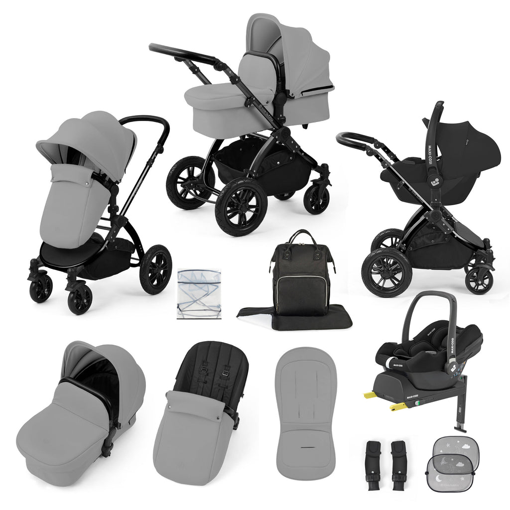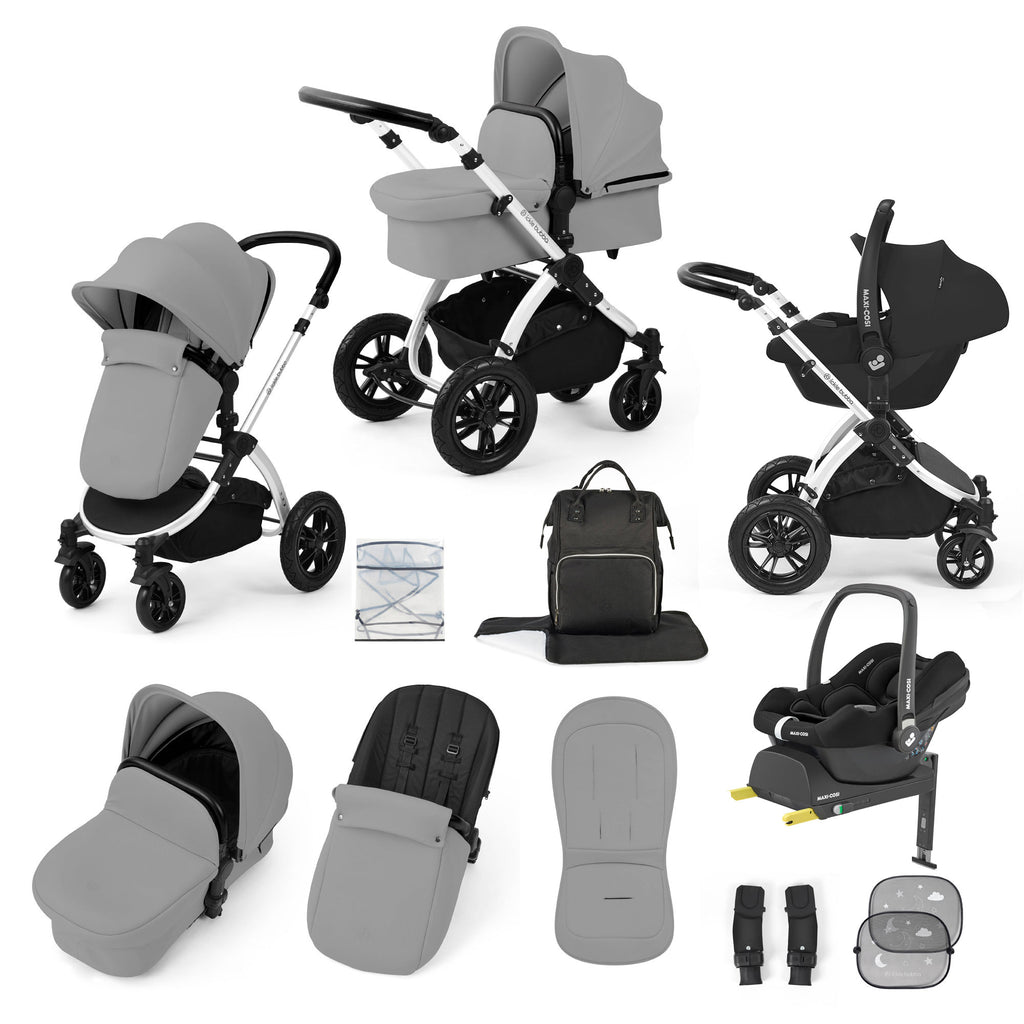Experience everyday adventures with confidence, comfort, and a touch of luxury. The Stomp Luxe 12 Piece Travel System in Pearl Grey with Maxi-Cosi CabrioFix i-Size Car Seat and ISOFIX Base brings together style, practicality, and premium safety to support you and your little one from the very first journey. Thoughtfully designed for modern families, this all-terrain system offers everything you need to travel smoothly—whether you’re navigating busy city streets or exploring off-the-path countryside trails.