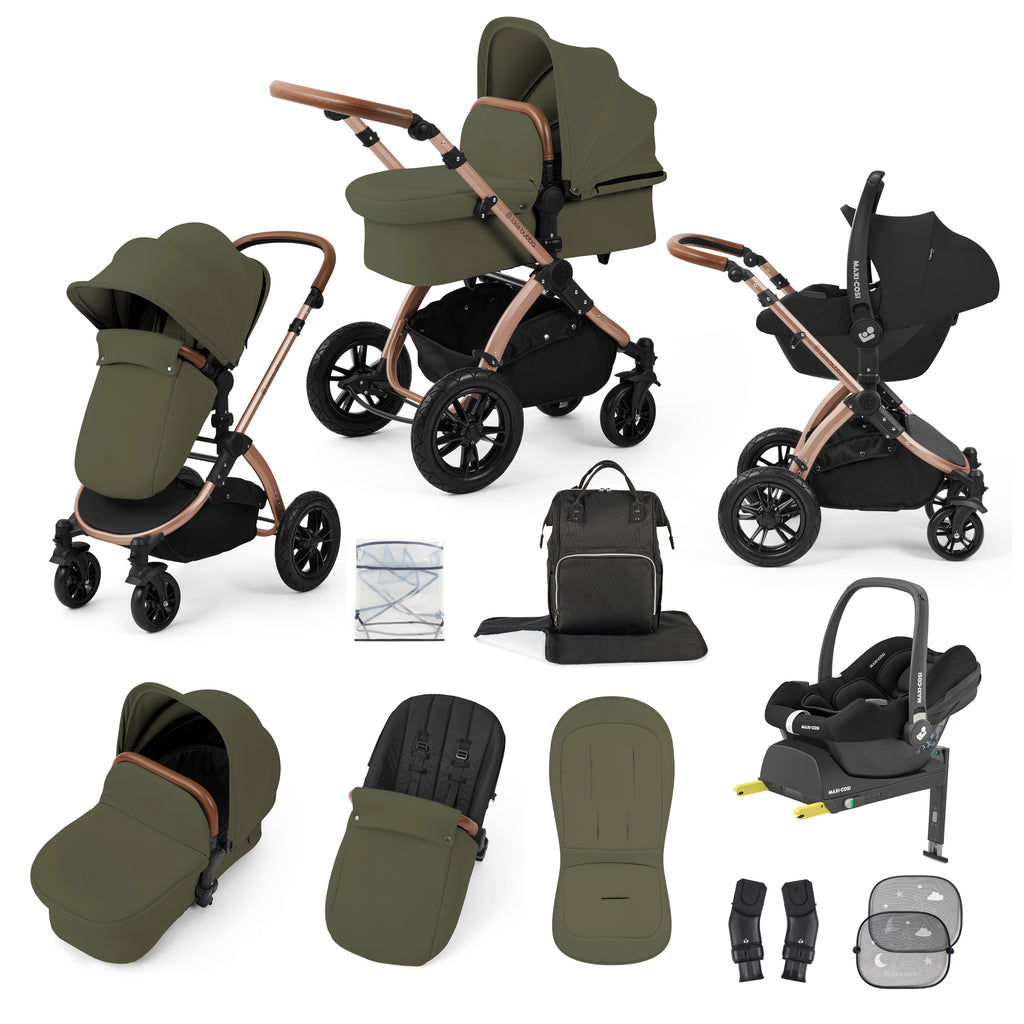 Experience everyday adventures with confidence, comfort, and a touch of luxury. The Stomp Luxe 12 Piece Travel System in Woodland with Maxi-Cosi CabrioFix i-Size Car Seat and ISOFIX Base brings together style, practicality, and premium safety to support you and your little one from the very first journey. Thoughtfully designed for modern families, this all-terrain system offers everything you need to travel smoothly—whether you’re navigating busy city streets or exploring off-the-path countryside trails.
