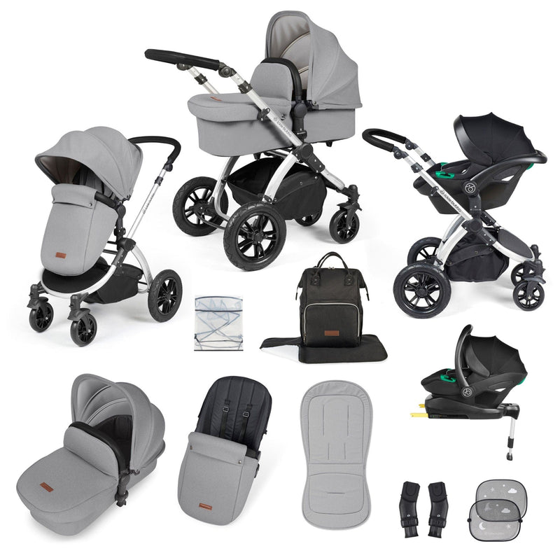 Ickle Bubba Stomp Luxe All-in-One Travel System with Isofix Base in Silver/Pearl Grey/Black