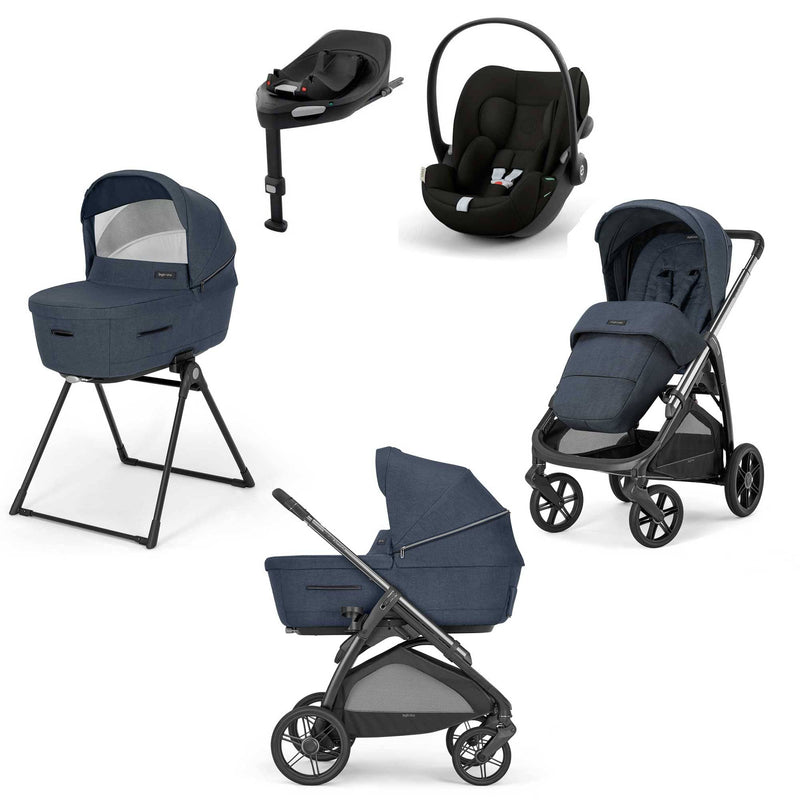 Complete travel system including carrycot, stroller seat, chassis, stand, and your choice of Cybex Cloud G or Cloud T car seat with base