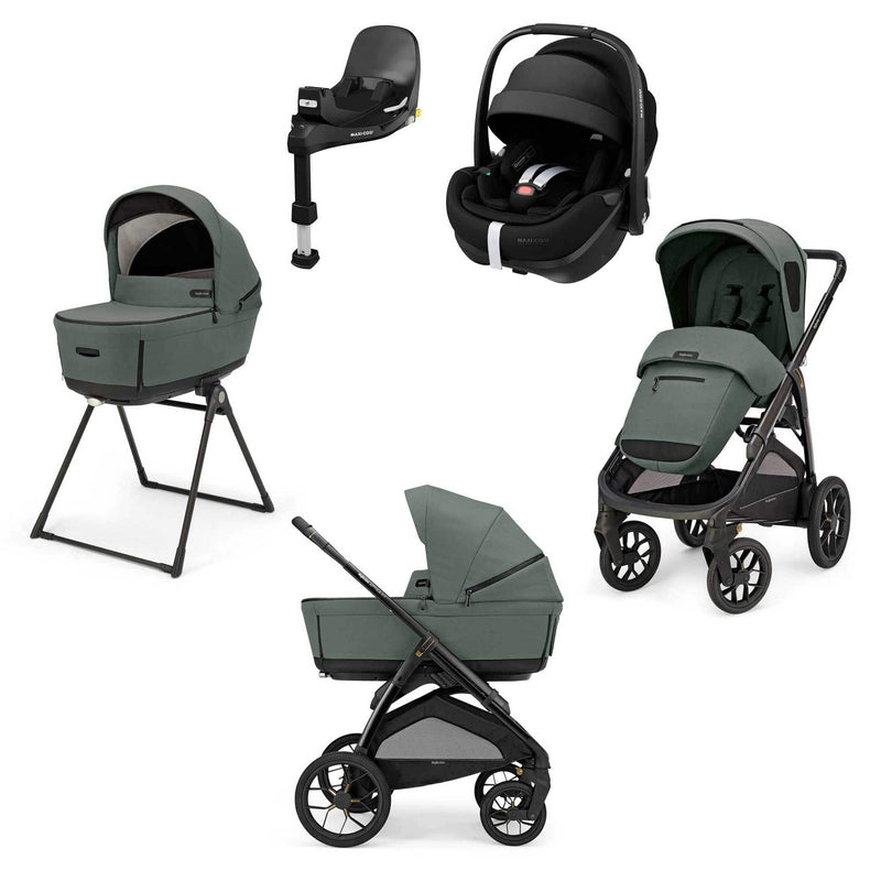 Complete travel system with carrycot, stroller seat, stand, and Maxi-Cosi car seat