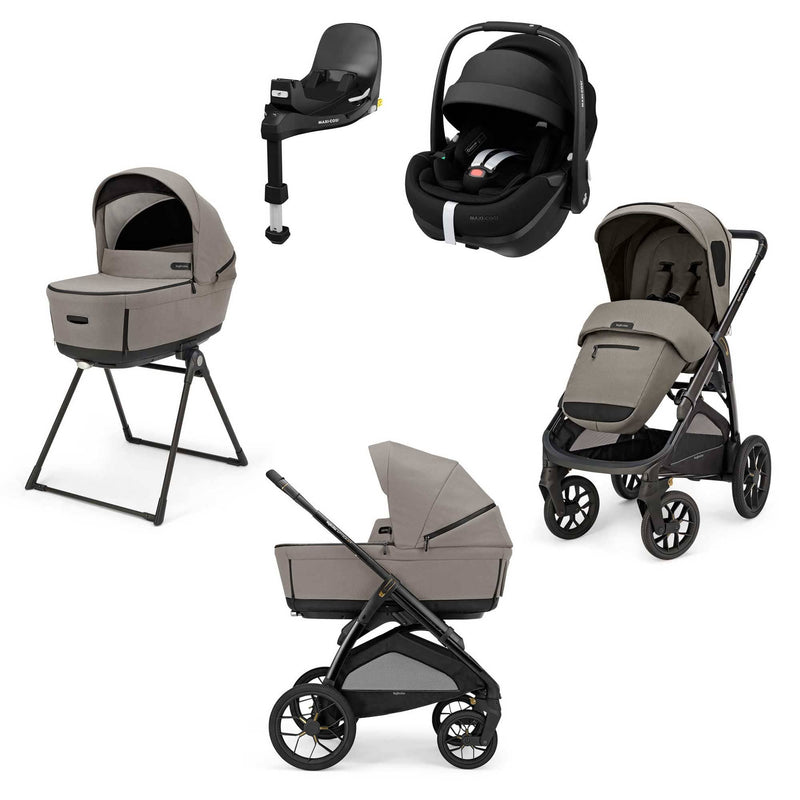 Complete travel system with carrycot, stroller seat, stand, and Maxi-Cosi car seat