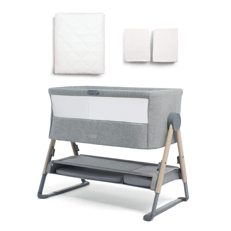 Mamas & Papas Lua Grey Bedside Crib Star/Stripe Bundle