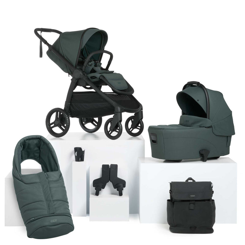 This bundle features the Ocarro 2 Pushchair and matching overnight-sleep-approved carrycot, a plush footmuff, and a carefully selected range of accessories — including a luxe backpack, universal cup holder and car seat adaptors — so you’re ready for every outing, every season, and every stage of growth.
