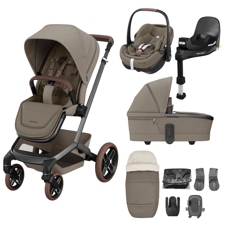 For families who love to explore, the Fame Premium Bundle offers everything you need for a comfortable and convenient adventure. The bundle includes the Pebble 360 Pro2 car seat and the FamilyFix 360 Pro base with SlideTech®—a revolutionary sliding car seat technology that simplifies daily routines. Along with the Fame pushchair and carrycot, the bundle includes a rain cover, 2-in-1 footmuff, cup holder, phone holder, and car seat adapters.