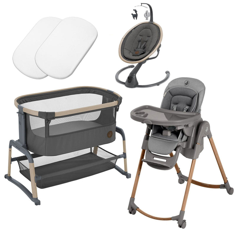 Preparing for your baby’s arrival can be overwhelming, but the Maxi-Cosi Home Premium Bundle makes it easier than ever. Featuring the luxurious Iora Air Crib, Minla Plus Highchair and the versatile Cassia Swing, all in the stylish Beyond Graphite colour, this bundle is thoughtfully designed to support your journey through the precious newborn stage.