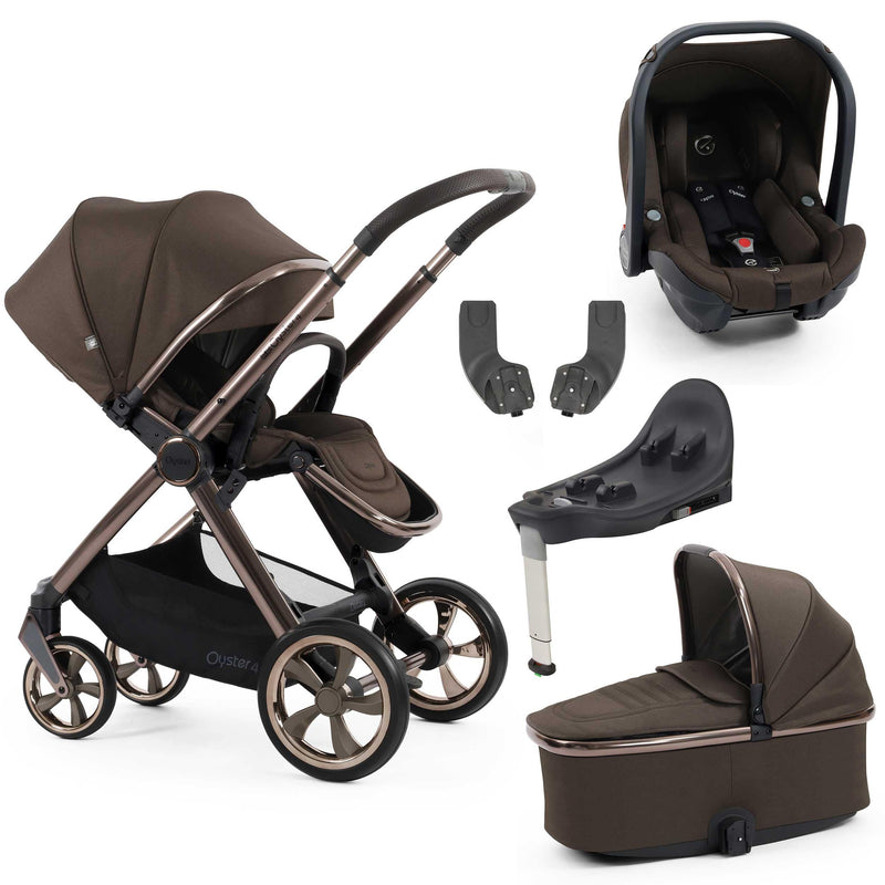 The Oyster4 Essential Bundle in Chocolate Velvet by BabyStyle is a complete travel solution designed to adapt effortlessly to your growing family's needs. With 19 configurations, it accommodates newborns, toddlers, and even older siblings. Whether you're navigating city streets or countryside paths, the Oyster4 ensures smooth, comfortable, and stylish journeys.