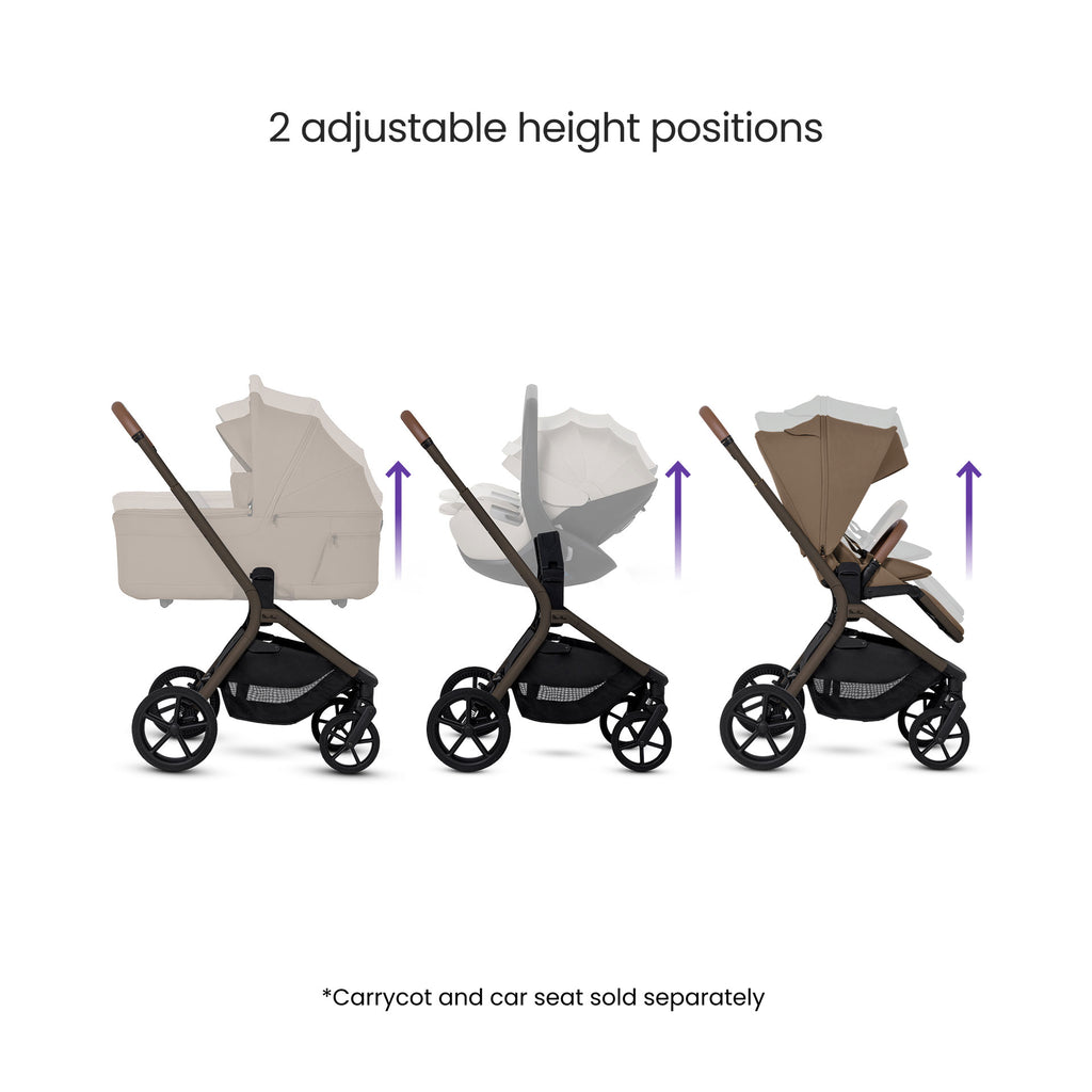 With its clever two-position height elevation system, Breez brings your baby closer to you – both in parent-facing and world-facing modes. This thoughtful feature is perfect for taller parents and creates more intimate, connected moments when you’re out and about.