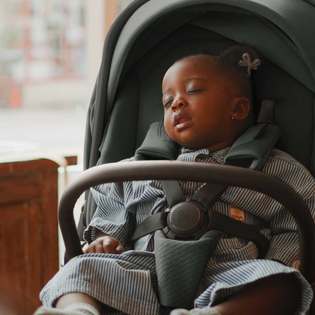The carrycot is more than just stylish – it’s also approved for overnight sleeping. That means safe naps at home, at a friend’s, or on family adventures. The bamboo lining helps regulate temperature naturally, while a mesh ventilation panel keeps things cool on warmer days. And for sunny strolls, the extendable UPF50+ hood grows as your little one does, providing plenty of shade and protection.