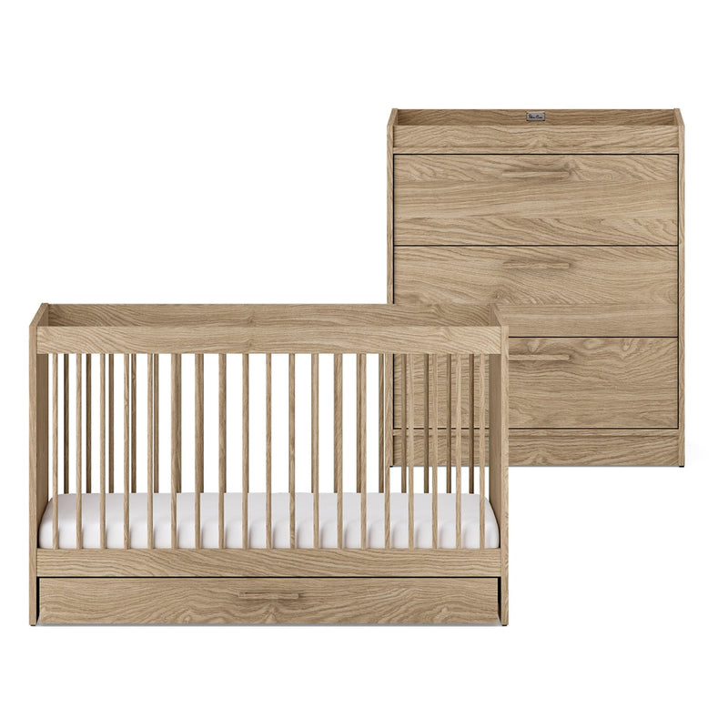 Welcome your baby into a world of calm and comfort with the Silver Cross Geneva 2-Piece Nursery Set in Oak. Thoughtfully designed to bring warmth and practicality to your baby’s first room, this beautiful set includes a versatile cot bed and a matching dresser – both styled in a natural oak finish with subtle Scandinavian-inspired detailing.