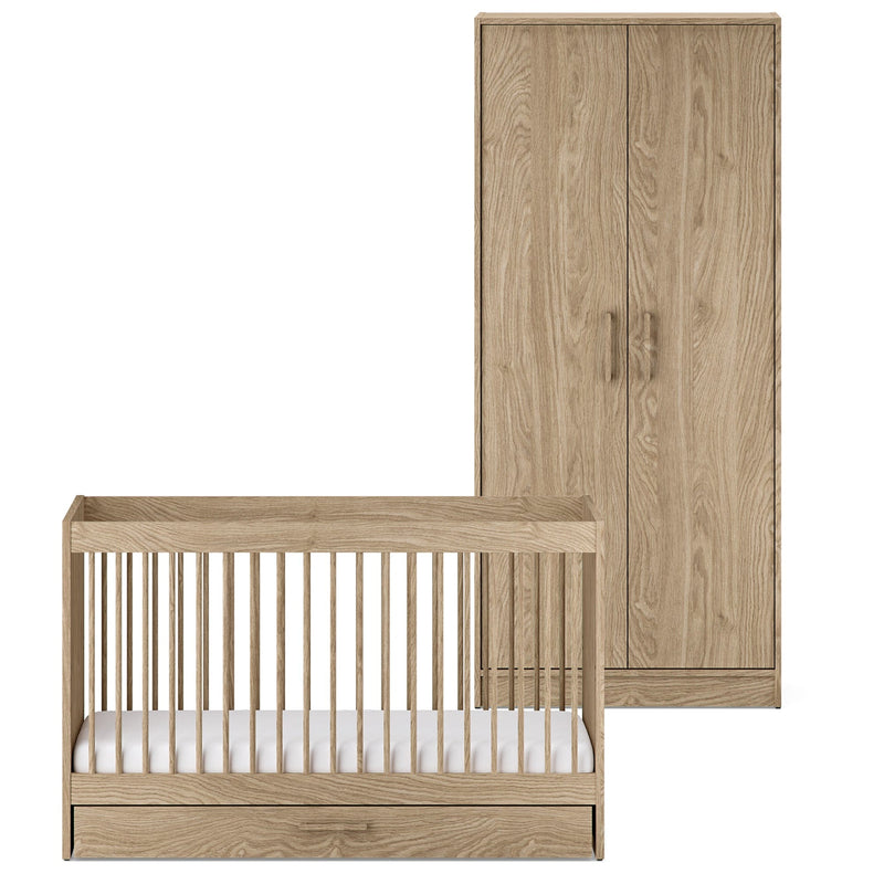 Welcome your baby into a world of calm and comfort with the Silver Cross Geneva 2-Piece Nursery Set in Oak. Thoughtfully designed to bring warmth and practicality to your baby’s first room, this beautiful set includes a versatile cot bed and a matching wardrobe – both styled in a natural oak finish with subtle Scandinavian-inspired detailing.