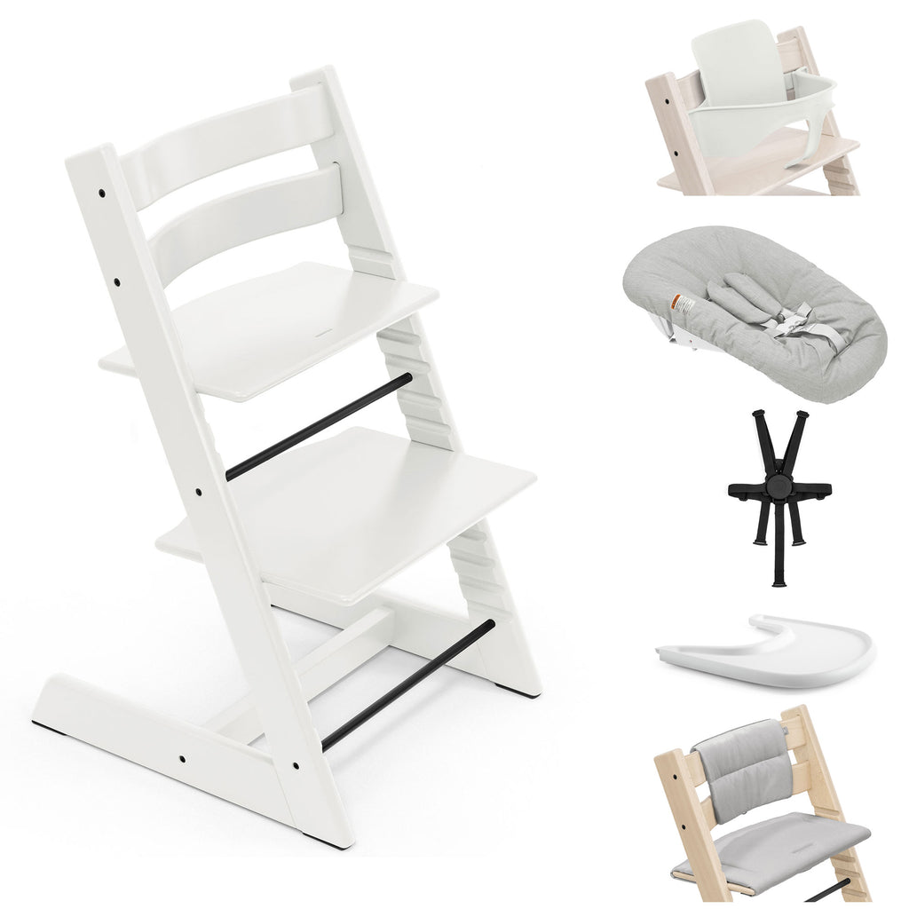 Complete bundle including Tripp Trapp® Highchair, Newborn Set, Baby Set, Tray, Cushion & Safety Harness
