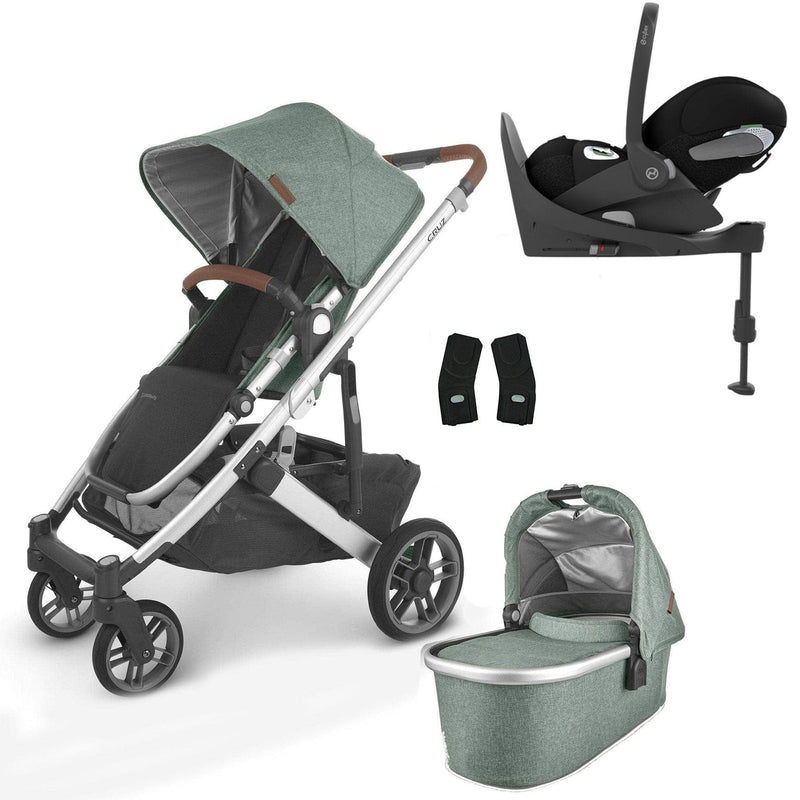 This bundle includes the Uppababy Cruz v2 Pushchair & bassinet in Emmett as well as the Cybex Cloud T Infant Car Seat, Base T and now the necessary car seat adapters making this travel system the perfect from birth solution so you can use it on the drive home from the hospital with your little one!